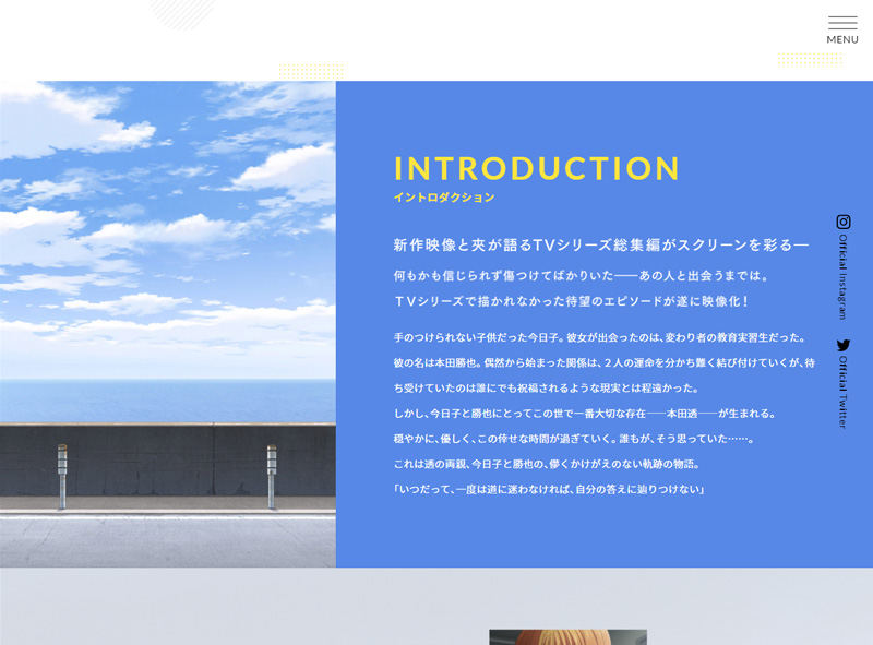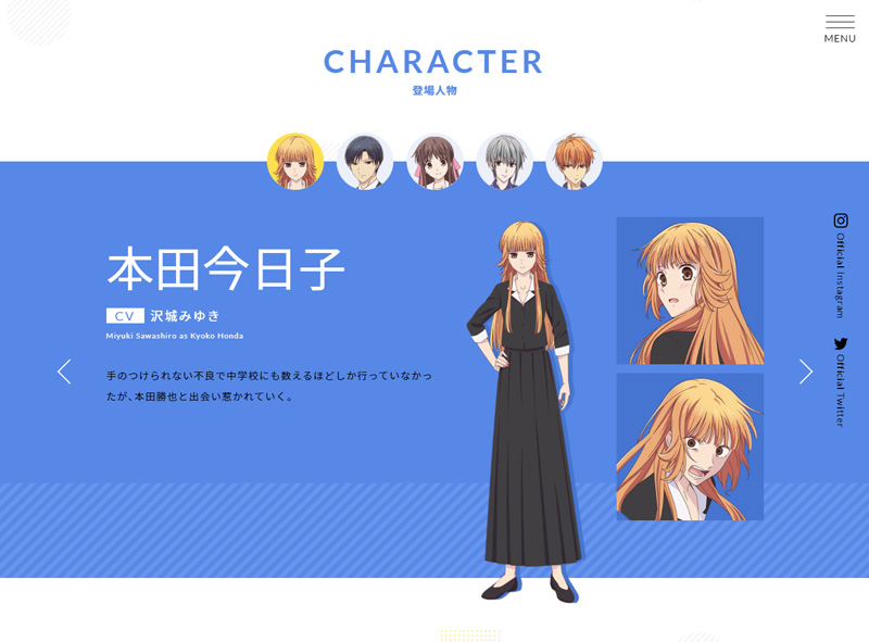 「フルーツバスケット-prelude-」 の公式サイトを制作いたしました。 キービジュアルの透明感を活かすよう白ベースに青を取り入れてデザインしました。