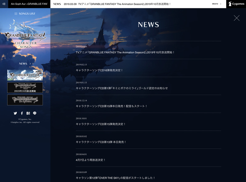 「グランブルーファンタジー」キャラクターソング公式サイト