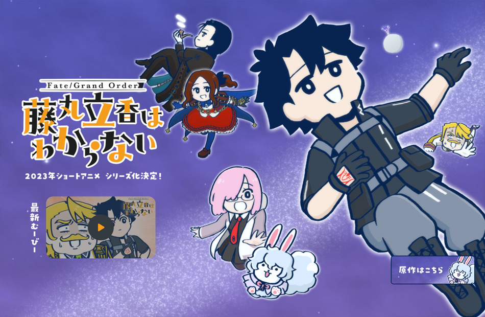 ショートアニメ「Fate/Grand Order 藤丸立香はわからない」のサイトを制作いたしました。 作品のもつ独特なゆるさを感じていただけるようなアニメーションを多く取り入れています。