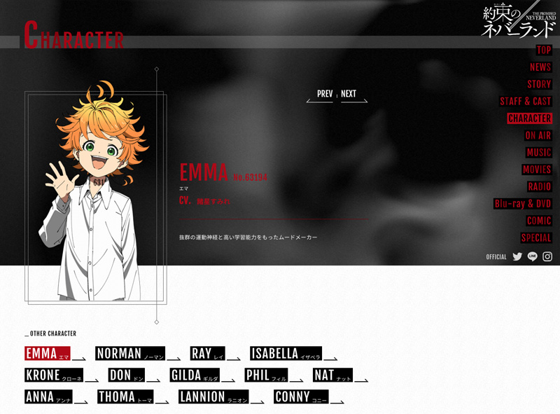 TVアニメ「約束のネバーランド」公式サイトを制作いたしました。 ティザーサイトからのスタイリッシュなイメージはそのままに、アニメサイトではあまり使われていないアニメーションも取り入れた目新しいサイトを目指しました。