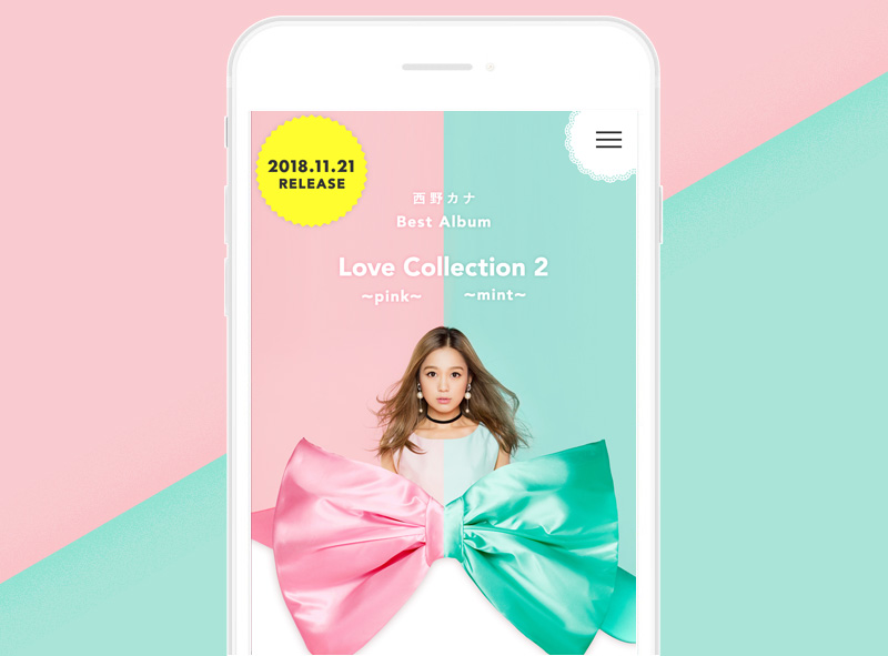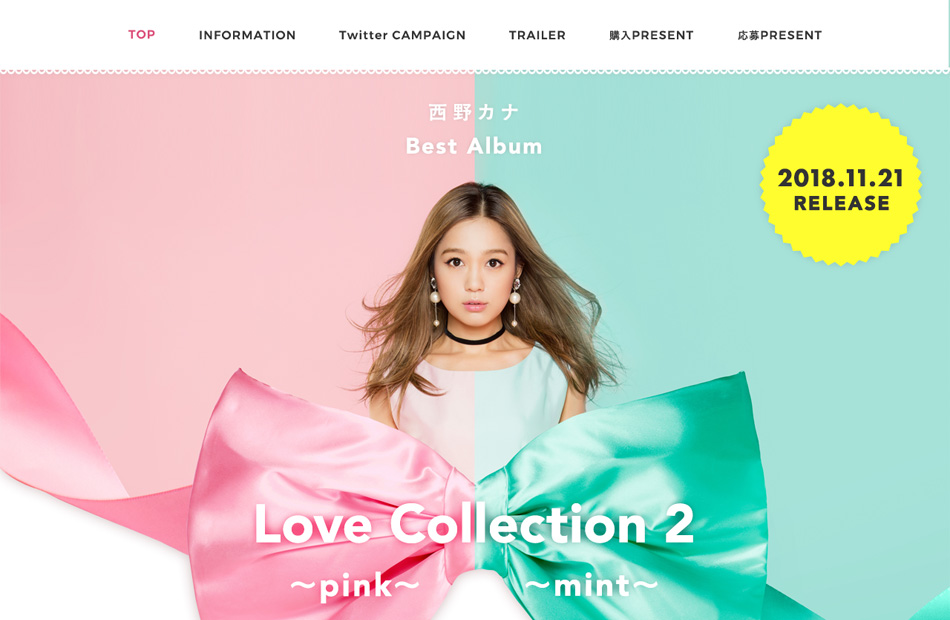 西野カナのデビュー10周年イヤーにリリースとなる、Best Album「Love Collection2 ~pink~/~mint~」の特設ページを制作しました。