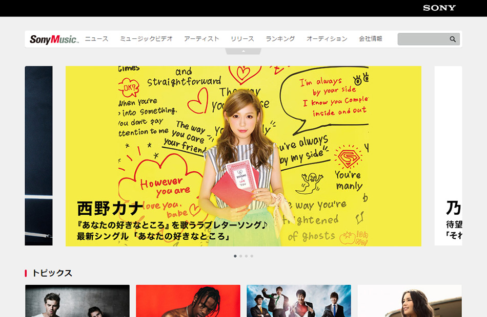 画像は極力使用せずフラットデザインを意識して「ソニーミュージック オフィシャルサイト」のフルリニューアルを行いました。