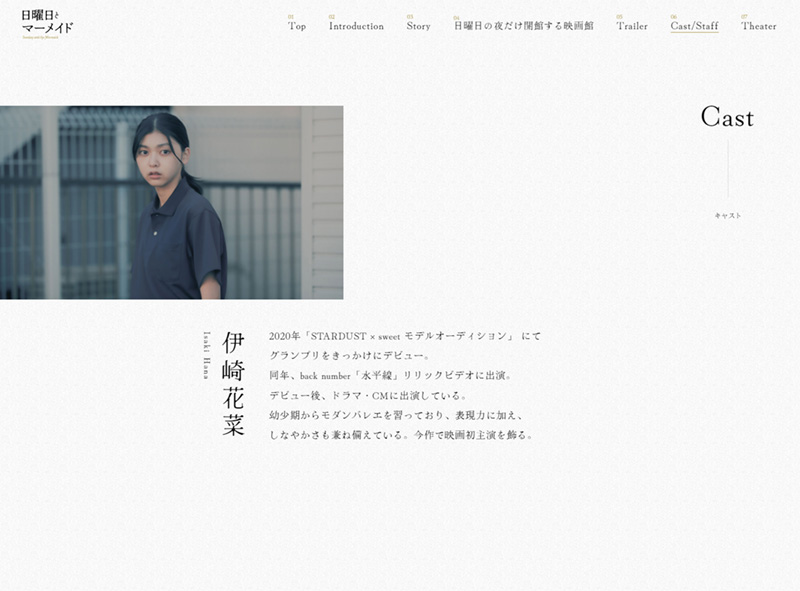 本編映像や写真素材から作品の空気を汲み取り、シンプルながら世界観を大切にしたサイトとなっています。