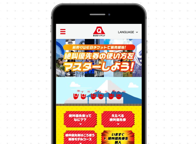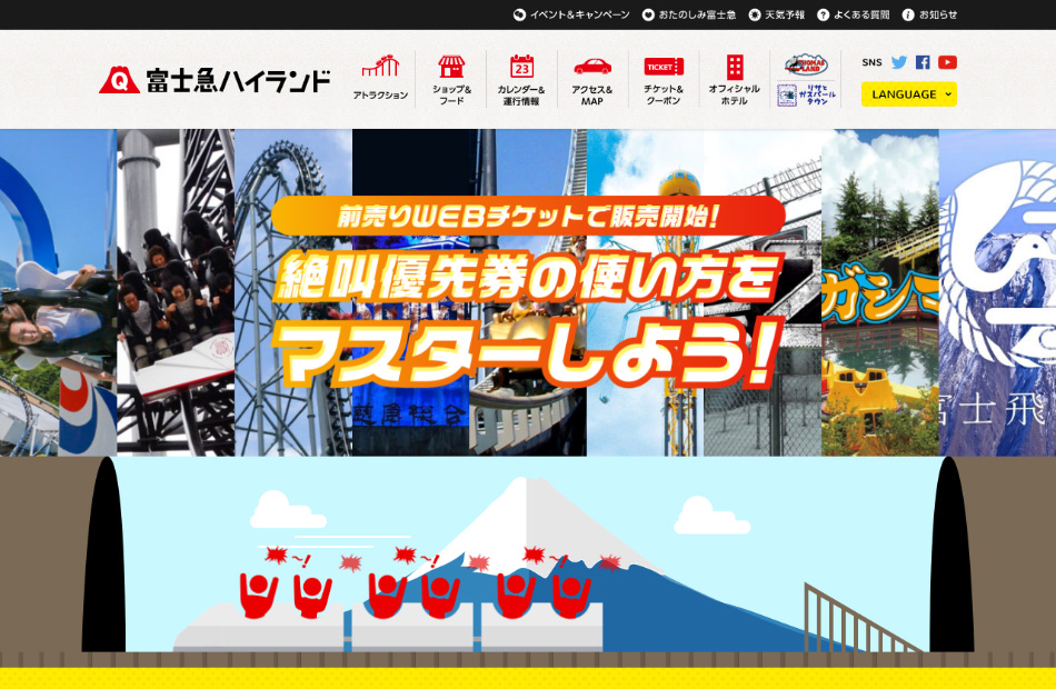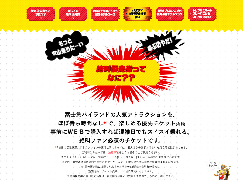 「富士急ハイランド」の人気アトラクションを、ほぼ待ち時間なしで、楽しめる優先チケット「絶叫優先券」を紹介するサイトを制作しました。